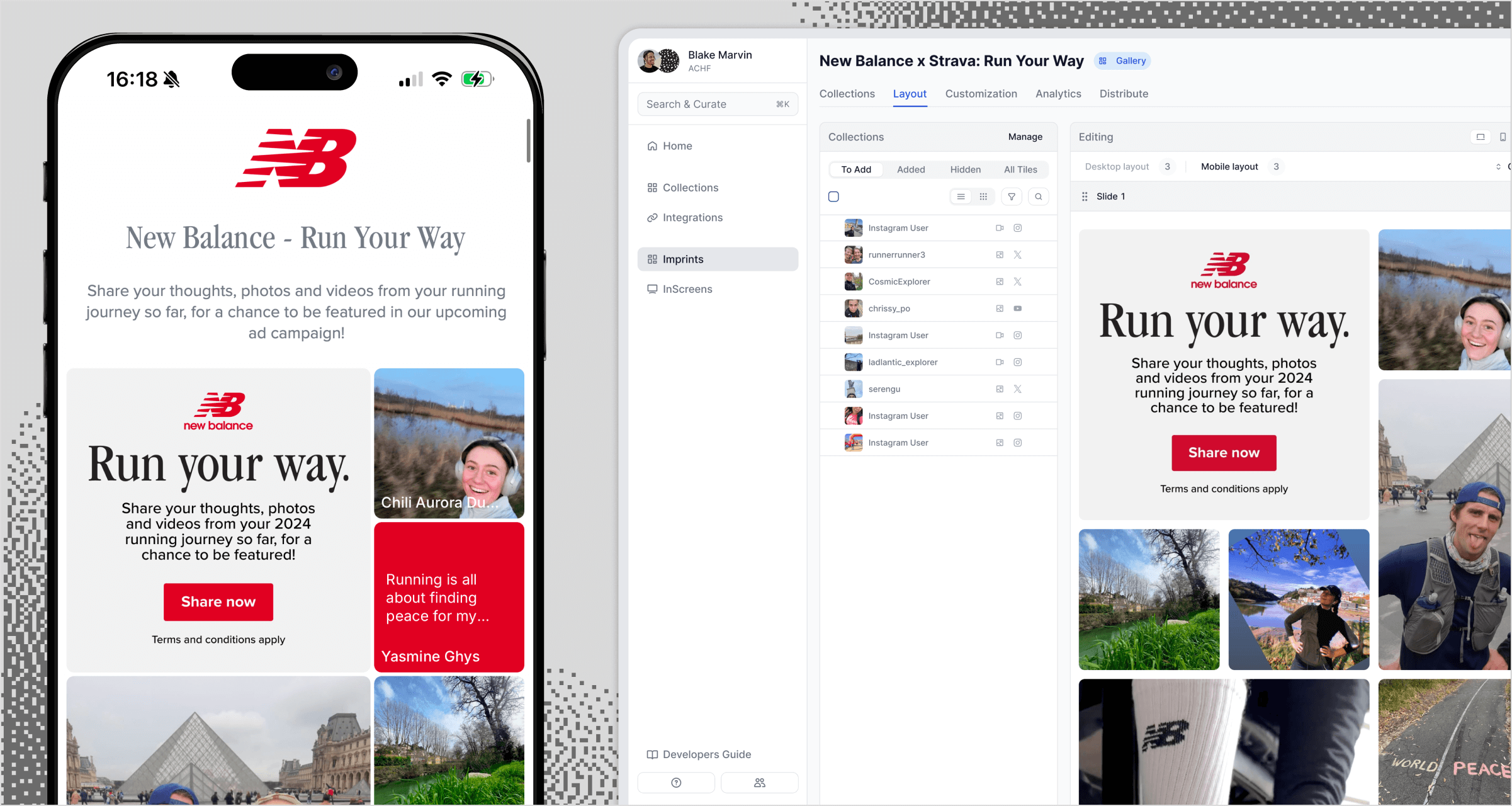 For their “Run Your Way” campaign, New Balance used Amondo’s social gallery and Submission Tile to give runners a simple way to take part.